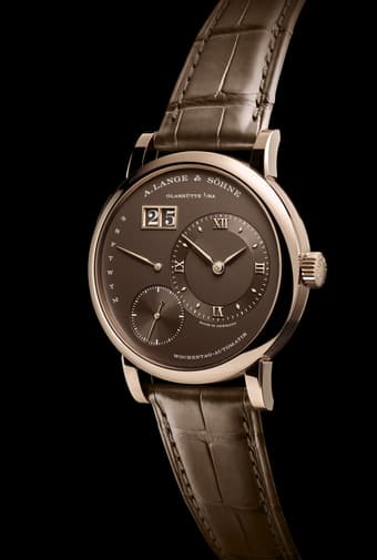 ساعة LANGE 1 DAYMATIC هي النسخة ذاتية التعبئة لواحدة من أشهر ساعات ايه. لانغيه أند صونه - وهي ساعة LANGE 1. هنا، تتجلّى السمة المميزة المشتركة، ألا وهي تصميم الميناء غير المتناظر، في صورة معكوسة عن التصميم الأصلي، وتتضمن عرضًا تراجعيًا لأيام الأسبوع ينسجم ببراعة مع عرض التاريخ الكبير الذي اشتهرت به ساعات لانغيه.